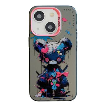 For iPhone 15 Animal Pattern Oil Painting Series PC + TPU Phone Case(Tattered Bear)