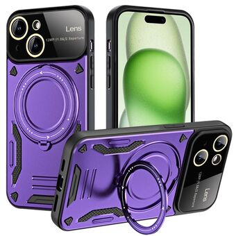 For iPhone 15 Large Window MagSafe Holder Phone Case(Purple)