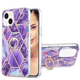 For iPhone 15 Electroplating Splicing Marble Pattern IMD TPU Shockproof Case with Ring Holder(Dark Purple)
