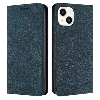 For iPhone 15 Ethnic Embossed Adsorption Leather Phone Case(Blue)