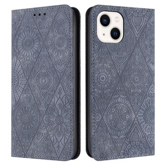 For iPhone 15 Ethnic Embossed Adsorption Leather Phone Case(Grey)