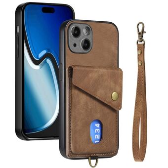 For iPhone 15 Retro Card Wallet Fold Leather Phone Case with Strap(Brown)
