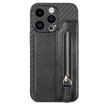 For iPhone 15 Carbon Fiber Horizontal Flip Zipper Wallet Phone Case(Black)