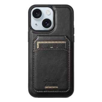 For iPhone 15 Suteni H03 Oil Wax Leather Wallet Stand Back Phone Case(Brown) (Suteni)