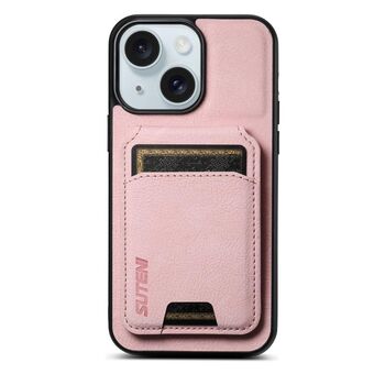 For iPhone 15 Suteni H02 Litchi Leather Card Wallet Stand Back Phone Case(Pink) (Suteni)