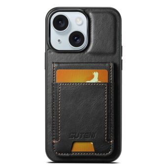 For iPhone 15 Suteni H03 Oil Wax Leather Wallet Stand Back Phone Case(Black) (Suteni)