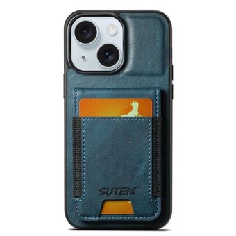 For iPhone 15 Suteni H03 Oil Wax Leather Wallet Stand Back Phone Case(Blue) (Suteni)