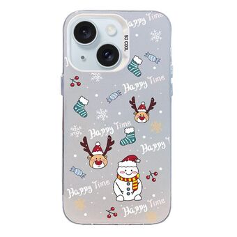 For iPhone 15 Christmas Series PC Full Coverage Pattern Phone Case(CW040 White)