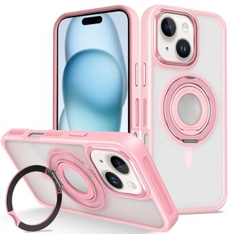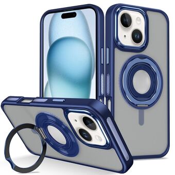 For iPhone 15 Matte Texture 360 Degree Rotary Tone Holder MagSafe Phone Case(Roland Purple)