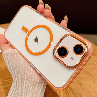 For iPhone 15 Transparent MagSafe Phone Case with Lens Film(Orange)