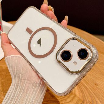 For iPhone 15 Transparent MagSafe Phone Case with Lens Film(Titanium Gold)