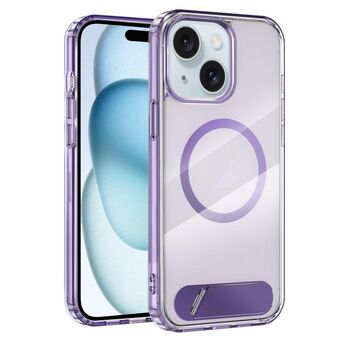 For iPhone 15 Clear PC Hybrid TPU MagSafe Phone Case with Holder(Purple)