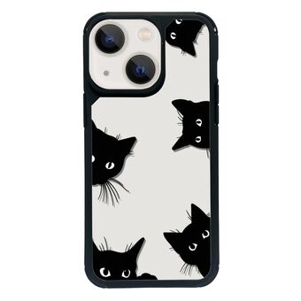For iPhone 15 Exclusive Design Style PC Full Coverage Pattern Phone Case(Black Cat)
