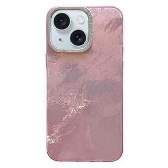 Θήκη κινητού τηλεφώνου TPU με δακτύλιο στήριξης, υφή Glitter με επιμετάλλωση για iPhone 15 (Ροζ Κυματισμοί Νερού) με προστατευτική μεμβράνη φακού.
