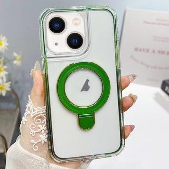 Θήκη τηλεφώνου για iPhone 15 με επιμετάλληση PC, περιστρεφόμενη βάση δακτυλιδιού 360 και MagSafe (Διαφανές Μαύρο)