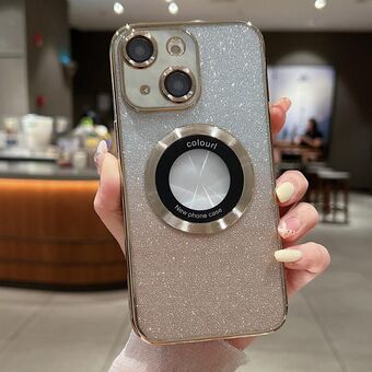 Θήκη τηλεφώνου TPU με Ηλεκτρολυτική Επικάλυψη, Γκλίτερ με Διαβάθμιση Χρωμάτων και Μεγάλο Παράθυρο MagSafe για iPhone 15 (Μωβ)