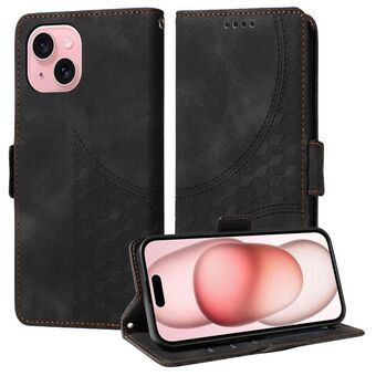 For iPhone 15 Embossed Rhombus Starry Leather Phone Case(Black)