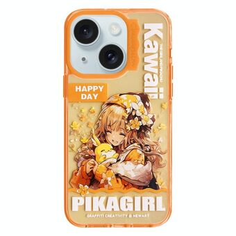 For iPhone 15 Colorful Wave Circle Creative Pattern Phone Case(Orange Butterfly Flower Girl)