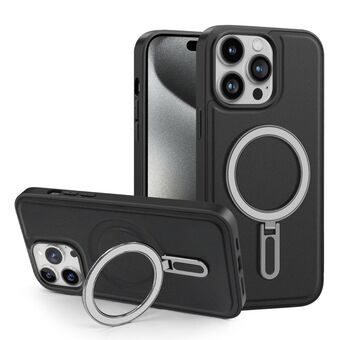 Θήκη κινητού για iPhone 15 με υφή ελαστικού + PC με βάση στήριξης (Μαύρο)