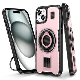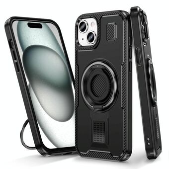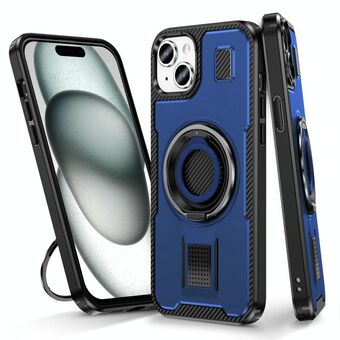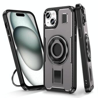 Θήκη τηλεφώνου για iPhone 15 με δακτύλιο, υβριδική από ανθρακονήματα PC και TPU (Λευκό)