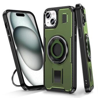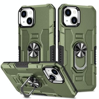 Θήκη τηλεφώνου για iPhone 15 με δαχτυλίδι στήριξης, υβριδική, ανθεκτική (Πράσινη)