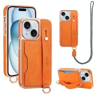 Θήκη κινητού VIETAO για iPhone 15 με υποδοχή κάρτας, λουρί καρπού και κορδόνι (Πορτοκαλί) (VIETAO)