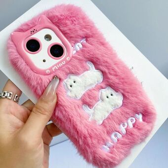 Θήκη τηλεφώνου από σιλικόνη πλήρους κάλυψης για iPhone 15, βελούδινη, χαριτωμένη γάτα (Ροζ)