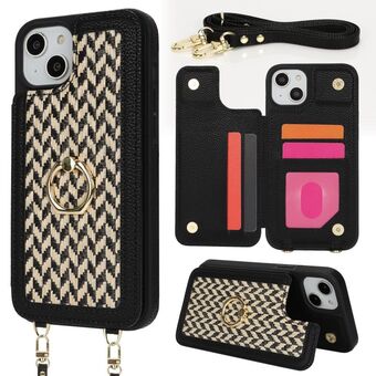Θήκη κινητού τηλεφώνου για iPhone 15 με διπλή θήκη καρτών, πλήρη κάλυψη και λουρί χιαστί (Μαύρο)