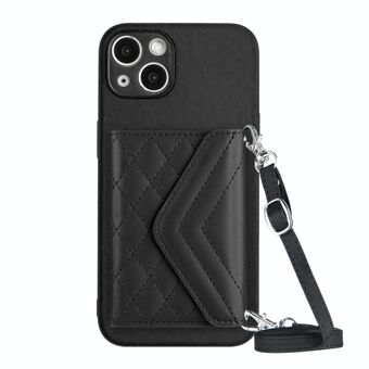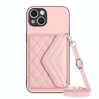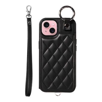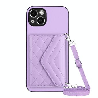 Θήκη τηλεφώνου για iPhone 15 με υφή ρόμβου και κοντό κορδόνι (Μωβ)