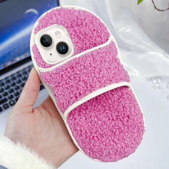 Θήκη τηλεφώνου TPU για iPhone 15 με δημιουργικό σχέδιο βελούδινης παντόφλας (Κόκκινο)