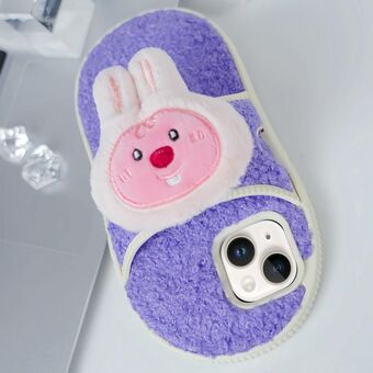 Θήκη τηλεφώνου TPU για iPhone 15 με σχέδιο βελούδινης κούκλας και παντόφλας (Γκρίζλι Αρκούδα)