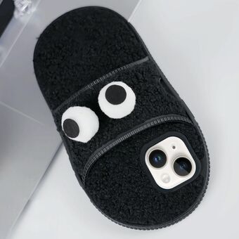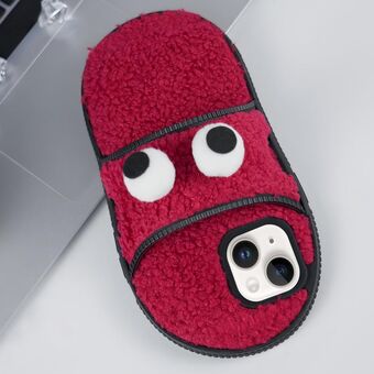 Θήκη τηλεφώνου TPU για iPhone 15, Δημιουργική Βελούδινη με Μεγάλα Μάτια και Σχέδιο Παντόφλας (Κόκκινη)