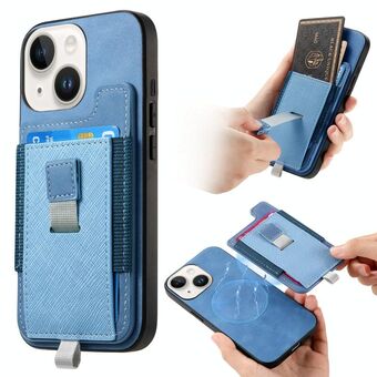 Θήκη τηλεφώνου για iPhone 15 Retro MagSafe από δέρμα με θήκη καρτών που τραβιέται (Μπλε)