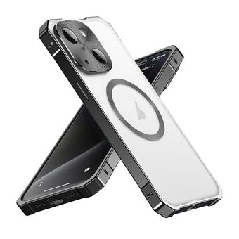 Θήκη τηλεφώνου για iPhone 15 με ακανόνιστο πλαίσιο από κράμα, ημιδιαφανές, με MagSafe (Μαύρο)