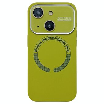Θήκη τηλεφώνου σιλικόνης MagSafe με φακό από ακρυλικό γυαλί και μεγάλο παράθυρο για iPhone 15 (Καφέ)