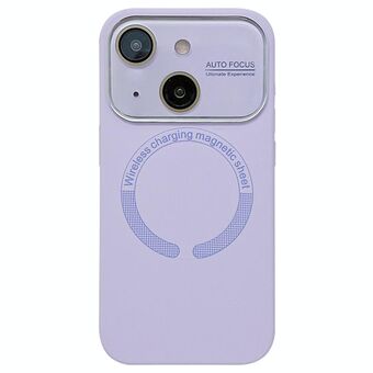 Θήκη τηλεφώνου σιλικόνης MagSafe με φακό από ακρυλικό γυαλί και μεγάλο παράθυρο για iPhone 15 (Λιλά)