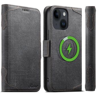 Θήκη τηλεφώνου Suteni J07 πολυλειτουργική οριζόντια MagSafe από τζιν και δέρμα για iPhone 15 (Μαύρο) (Suteni)