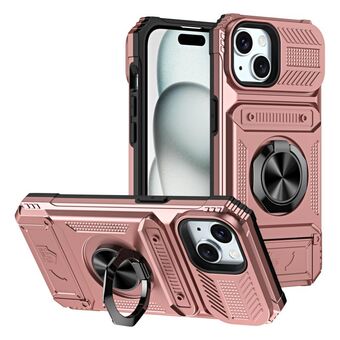 For iPhone 15 TPU+PC Shockproof Card Phone Case with Metal Ring Holder(Rose Gold)