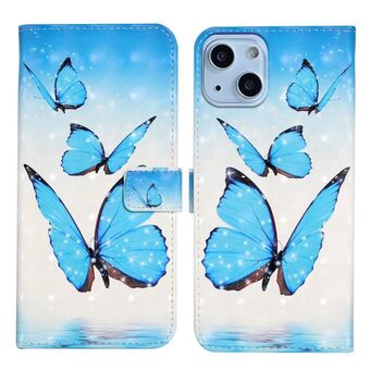 For iPhone 15 Oil Embossed 3D Drawing Leather Phone Case(Blue Butterflies)