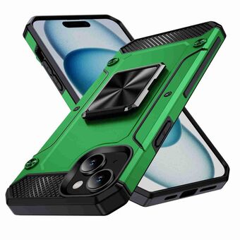 For iPhone 15 Shockproof Metal Holder Phone Case(Green)