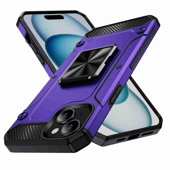 For iPhone 15 Shockproof Metal Holder Phone Case(Purple)