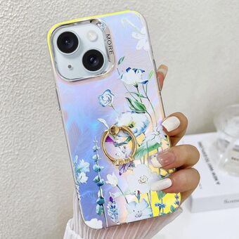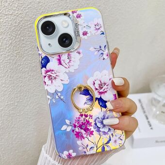 Θήκη τηλεφώνου TPU με δακτύλιο στήριξης και λουλουδάτο σχέδιο με ηλεκτρολυτική επίστρωση λέιζερ για iPhone 15 (Πρωινό Δόξα AH16)
