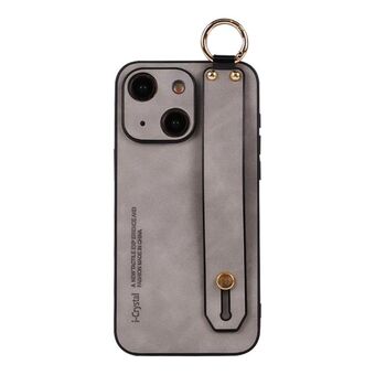 Θήκη τηλεφώνου για iPhone 15 με βάση καρπού από δέρμα αρνιού (Γκρι)