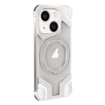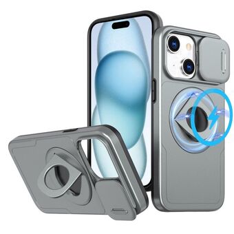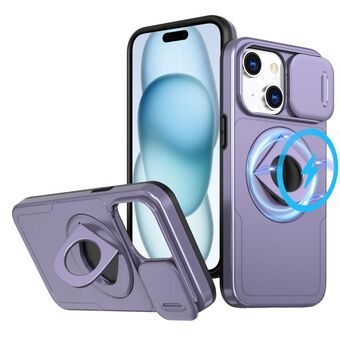 Θήκη τηλεφώνου από μέταλλο για iPhone 15 με μηχανικό βραχίονα, χωρίς πλαίσιο και με MagSafe (Μαύρο-Μωβ)
