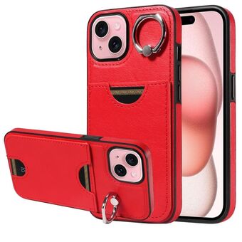 Θήκη τηλεφώνου για iPhone 15 με υφή μοσχαρίσιου δέρματος, θήκη κάρτας και δαχτυλίδι στήριξης (Κόκκινο)