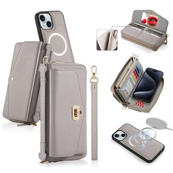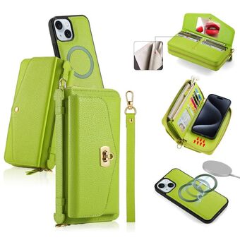 Θήκη τηλεφώνου για iPhone 15 MagSafe Crossbody, πολυλειτουργική με φερμουάρ και δέρμα Lychee (Πράσινη)