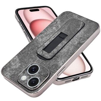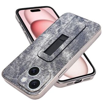 Θήκη τηλεφώνου με ψύξη για iPhone 15, μοτίβο τζιν, επιμεταλλωμένο, με αναδιπλούμενο στήριγμα (Γκρι Μπλε)