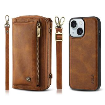 Θήκη τηλεφώνου από δέρμα με φερμουάρ και πολλαπλές λειτουργίες για iPhone 15 (Ροζ)
