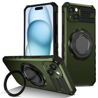 For iPhone 15 Rotating Magnetic Holder Phone Case(Dark Green)