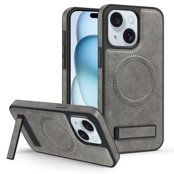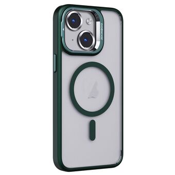 Θήκη τηλεφώνου για iPhone 15, πολυλειτουργική, με MagSafe, από PU δέρμα (Σκούρο Πράσινο)